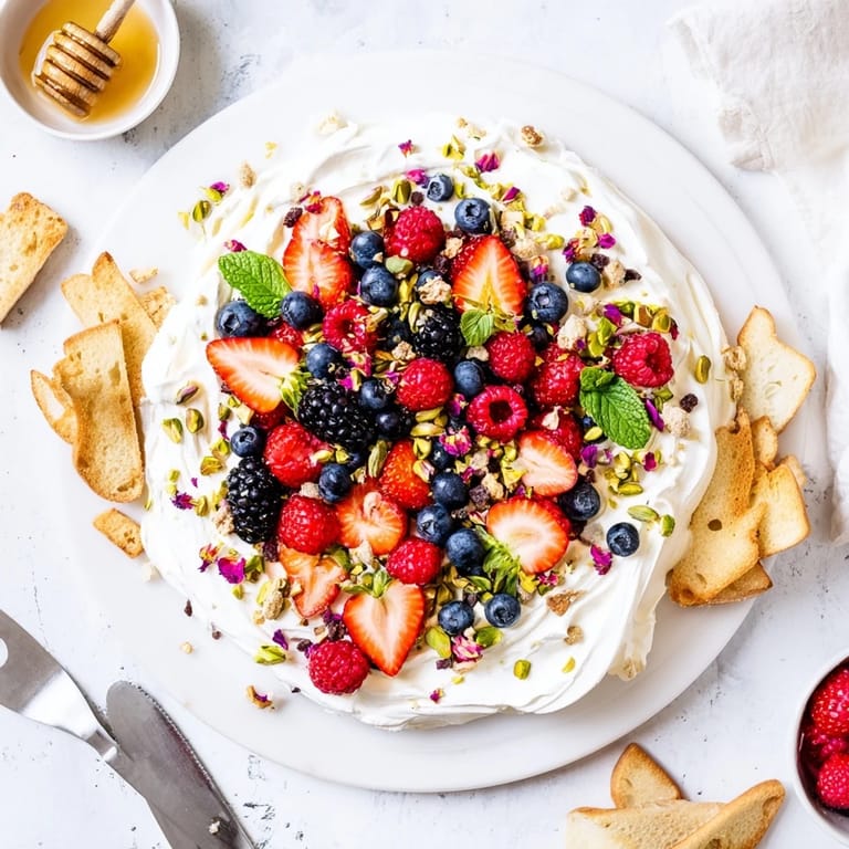 Pin Recipe A delightful, shareable dessert twist on the trendy butter board featuring whipped flavoured cream cheese, fresh berries, and sweet toppings. Perfect for gatherings and sure to impress with bold colours and bright flavours.