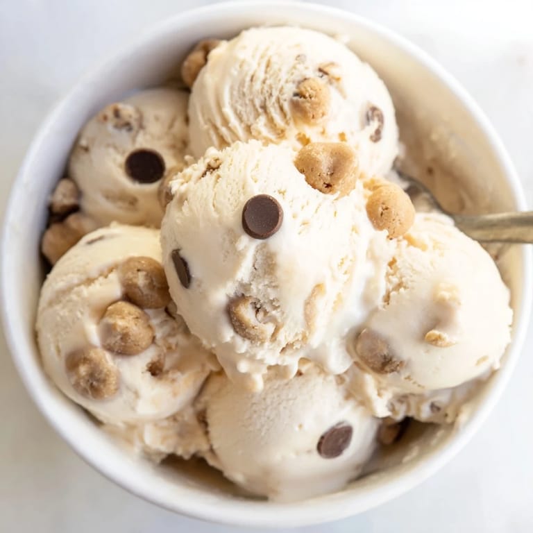 Pin Recipe A creamy, protein-packed ice cream featuring whipped cottage cheese and bursts of edible chocolate chip cookie dough, perfect for a guilt-free frozen treat.