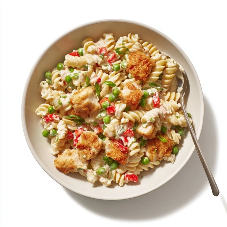 Pin Recipe The first time I made this pasta salad was during a sweltering July heatwave when turning on the oven felt like a personal betrayal. I ended up frying chicken at midnight in my underwear just to test the recipe, and woke up to my roommate staring suspiciously at the container of golden nuggets on the counter.