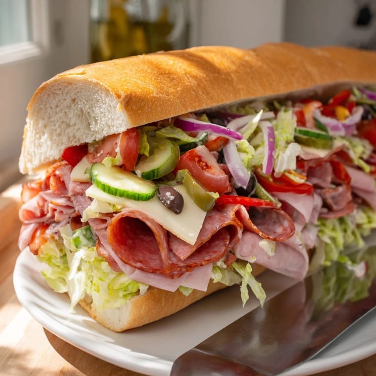 Pin Recipe A vibrant, deli-style sandwich featuring a medley of Italian-inspired ingredients chopped and tossed together for the ultimate flavor-packed bite—perfect for lunch or a crowd-pleasing party platter.