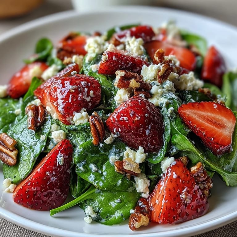 I made this for a baby shower once, and someone's aunt actually pulled me aside to ask if I'd catered it myself. The spinach had stayed perfectly crisp, the strawberries hadn't gone soggy, and that bright feta kept playing against the sweetness in this way that felt both familiar and surprising. I realized then that this wasn't just a salad I made when I was running late—it was something I could be proud of.