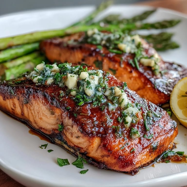 The beauty of this dish lies in its simplicity. The salmon roasts alongside the asparagus, allowing the flavors to meld together while the garlic butter sauce caramelizes slightly in the oven, creating pockets of rich, savory goodness. The lemon slices not only add visual appeal but also infuse the dish with a subtle citrus aroma that brightens every bite. Whether you're serving this for a special occasion or treating yourself to a nourishing meal, this recipe delivers on all fronts.