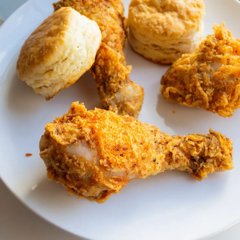 Pin Recipe Crispy, juicy fried chicken paired with fluffy, buttery buttermilk biscuits—a classic Southern comfort meal perfect for gatherings and family dinners.