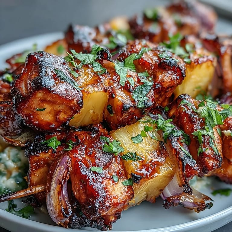 Pin Recipe Whether you're hosting a backyard barbecue or looking for an easy weeknight dinner with wow factor, these BBQ Chicken Pineapple Kebabs deliver on all fronts. The combination of tender, smoky chicken, sweet caramelized pineapple, and perfectly charred red onion creates a harmony of flavors that will have everyone coming back for seconds. With just 32 minutes from prep to plate and minimal cleanup, this recipe proves that impressive meals don't have to be complicated. Fire up the grill and get ready to enjoy one of summer's most satisfying dishes.