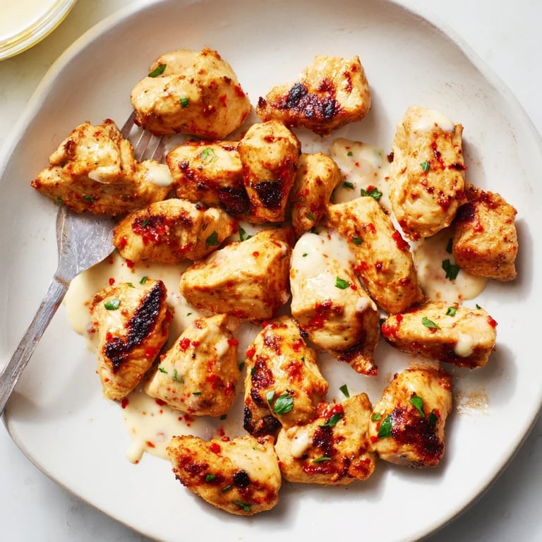 I first made these chicken bites as a quick fix during a busy weeknight. The combination of smoky grilled chicken and tangy garlic sauce had my whole family reaching for seconds.