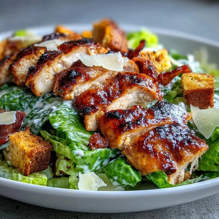 Pin Recipe My neighbor Marcus stopped by one afternoon with a bag of sourdough from the farmer's market, and instead of letting it go stale, I got that itch to make something satisfying for dinner. There's something about grilled chicken that shifts a salad from side dish to main event, especially when you're feeding hungry people who actually want to feel full. The Greek yogurt dressing came from a lazy Sunday when I realized I had everything in my fridge except the motivation to make traditional mayo-heavy Caesar, and honestly, it turned out better. This became one of those recipes I reach for when I want something fresh but substantial, the kind that tastes a little fancy without the fuss.