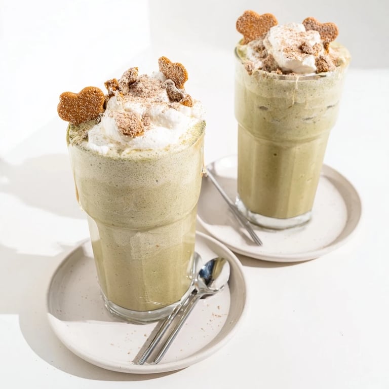 Pin Recipe A festive, refreshing frappe combining the spicy warmth of gingerbread cookies with earthy matcha all in a sugar-free creamy blend—perfect for guilt-free holiday sipping.